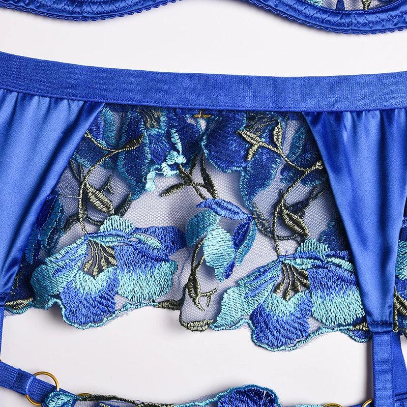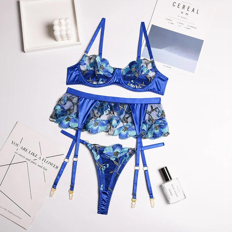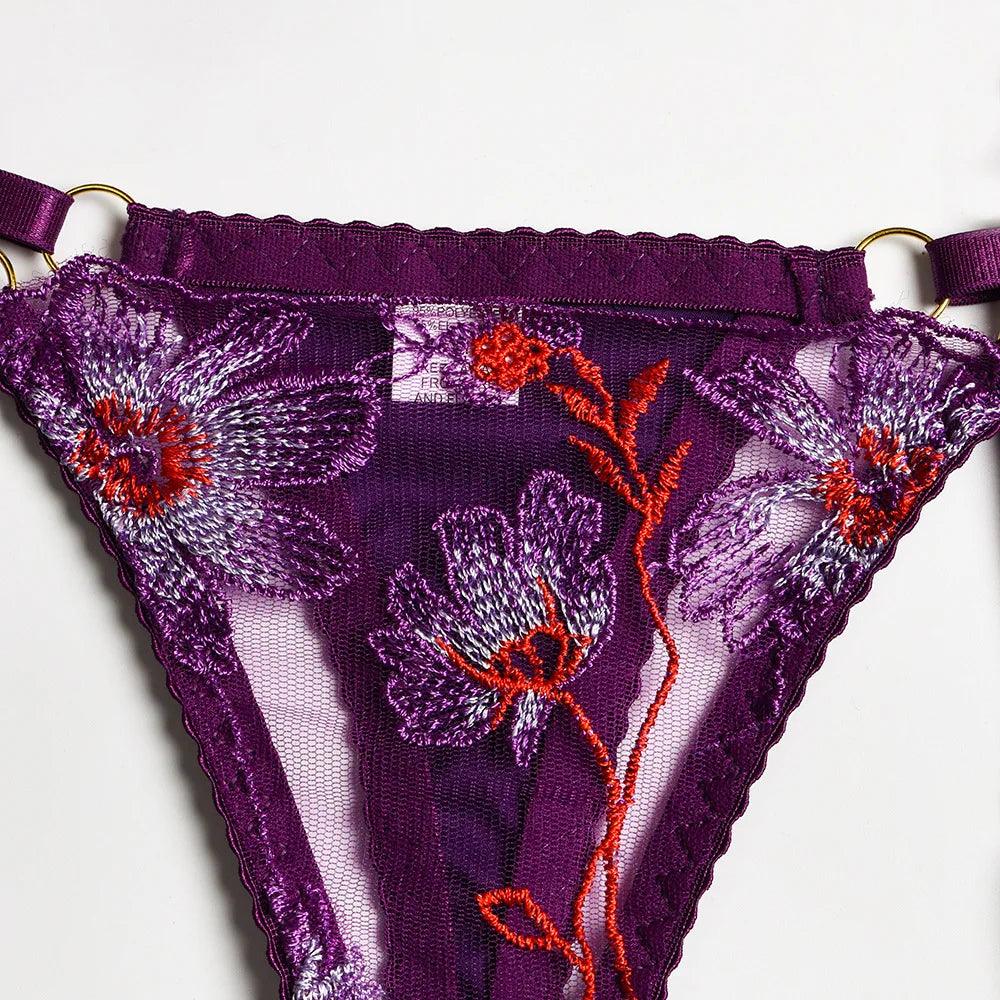 3-częściowy komplet bielizny koronkowej z kwiatowym haftem