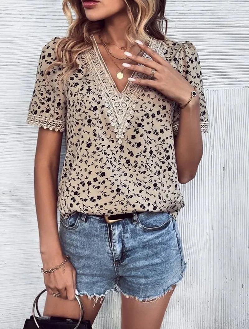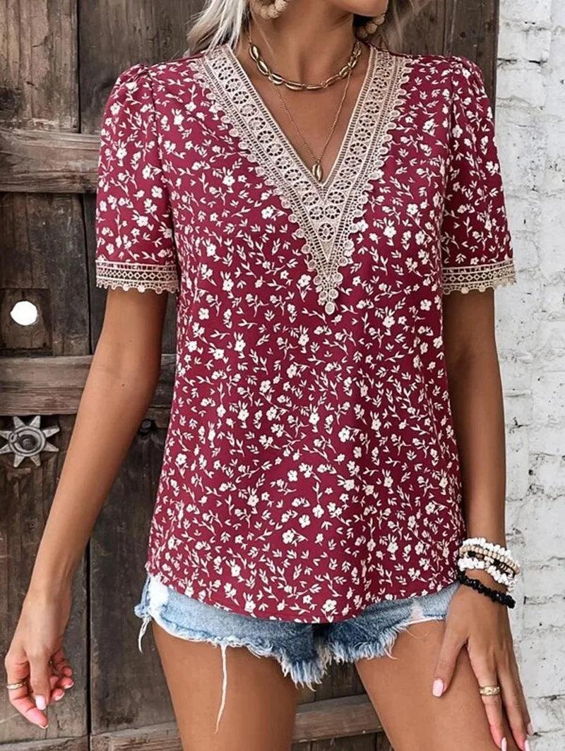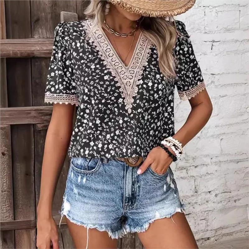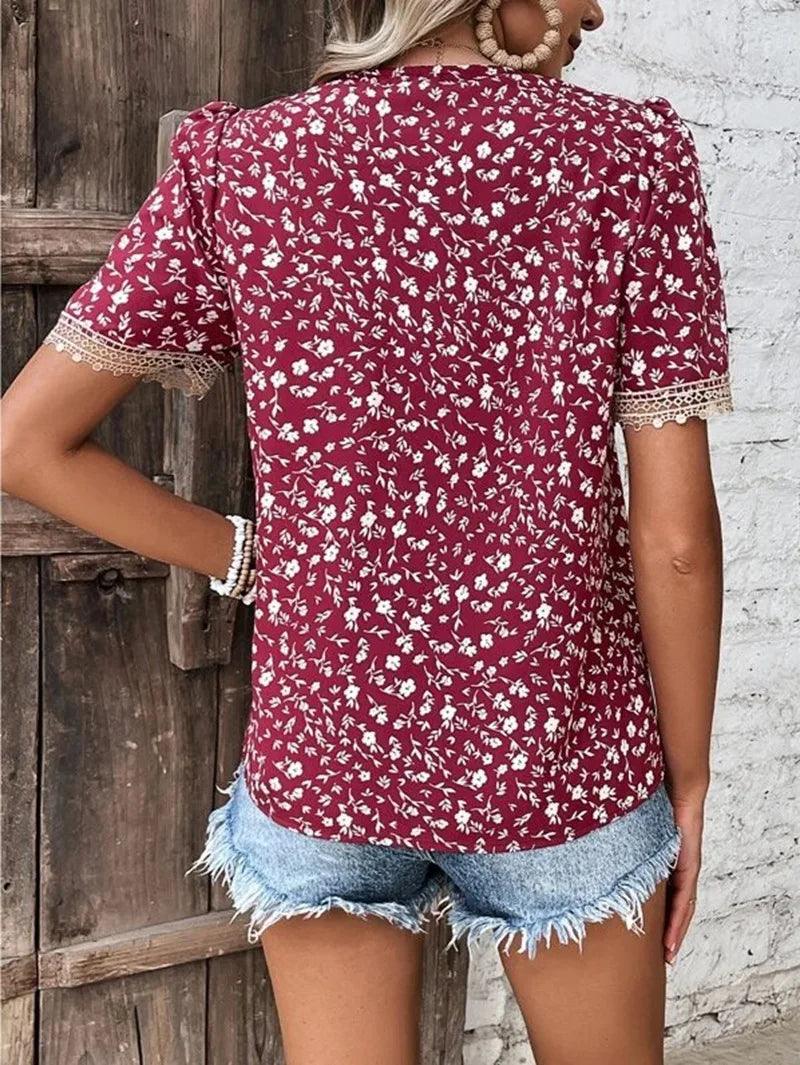 Bluzka damska z ażurowym zdobieniem z krótkim rękawem