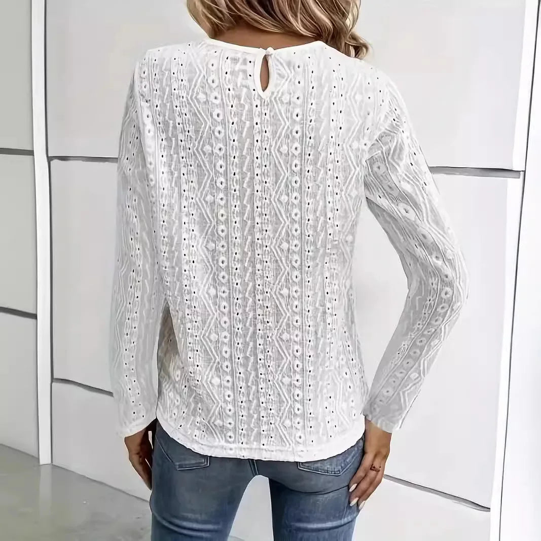 Damska bluzka z ozdobnym koronkowym dekoltem