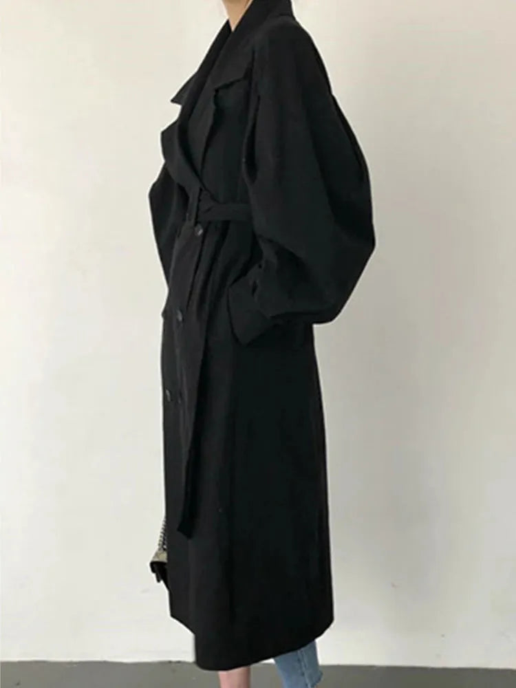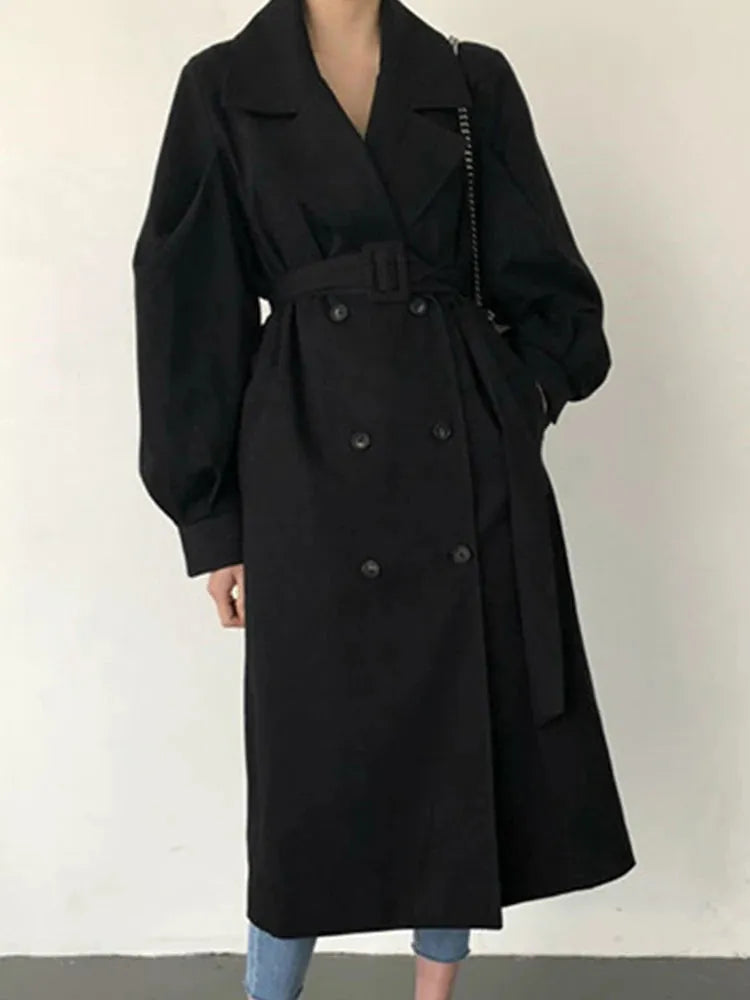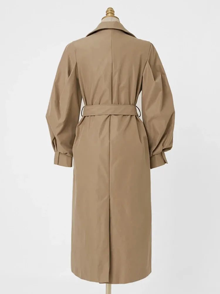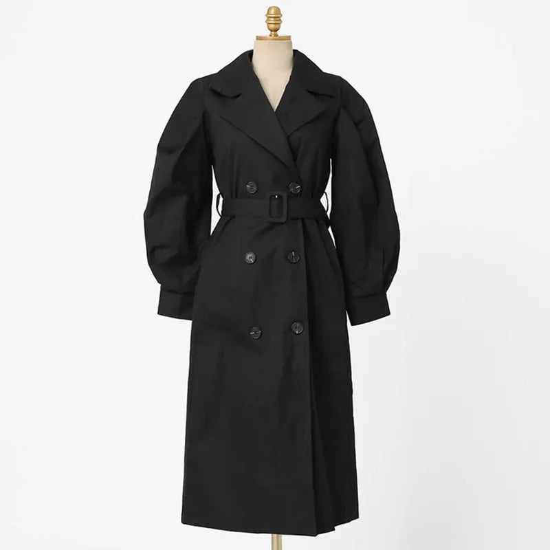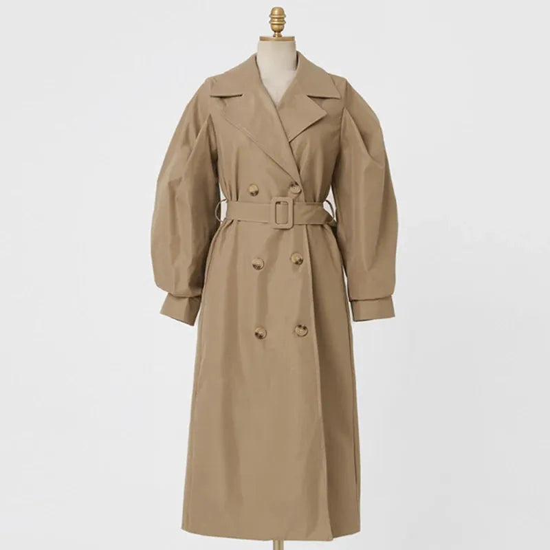 Długi prochowiec damski z bufiastymi rękawami