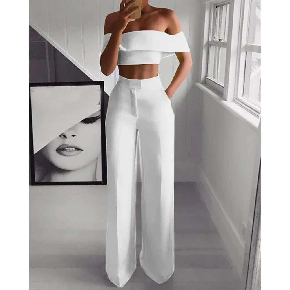 Długie spodnie damskie z prostymi nogawkami i wysoką talią