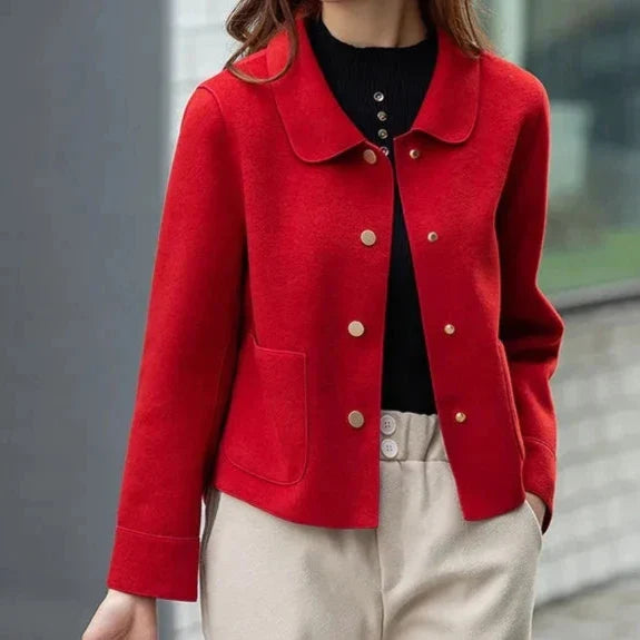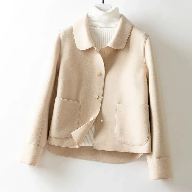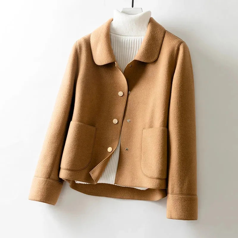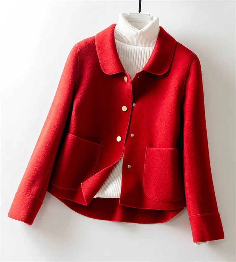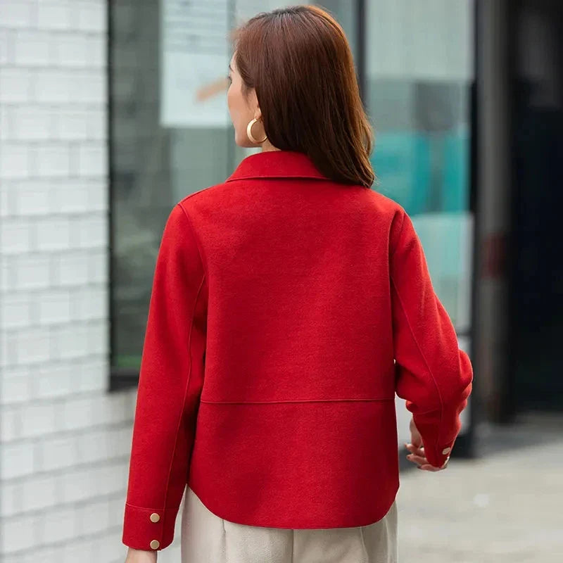 Krótki damski płaszcz o prostym kroju zapinany na zatrzaski