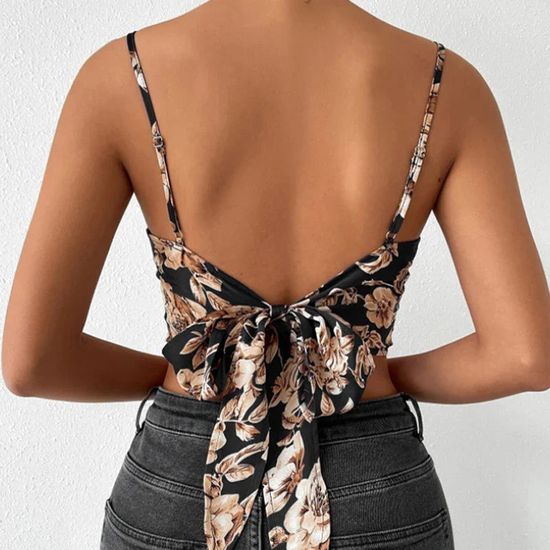 Kwiecisty top damski z kokardą