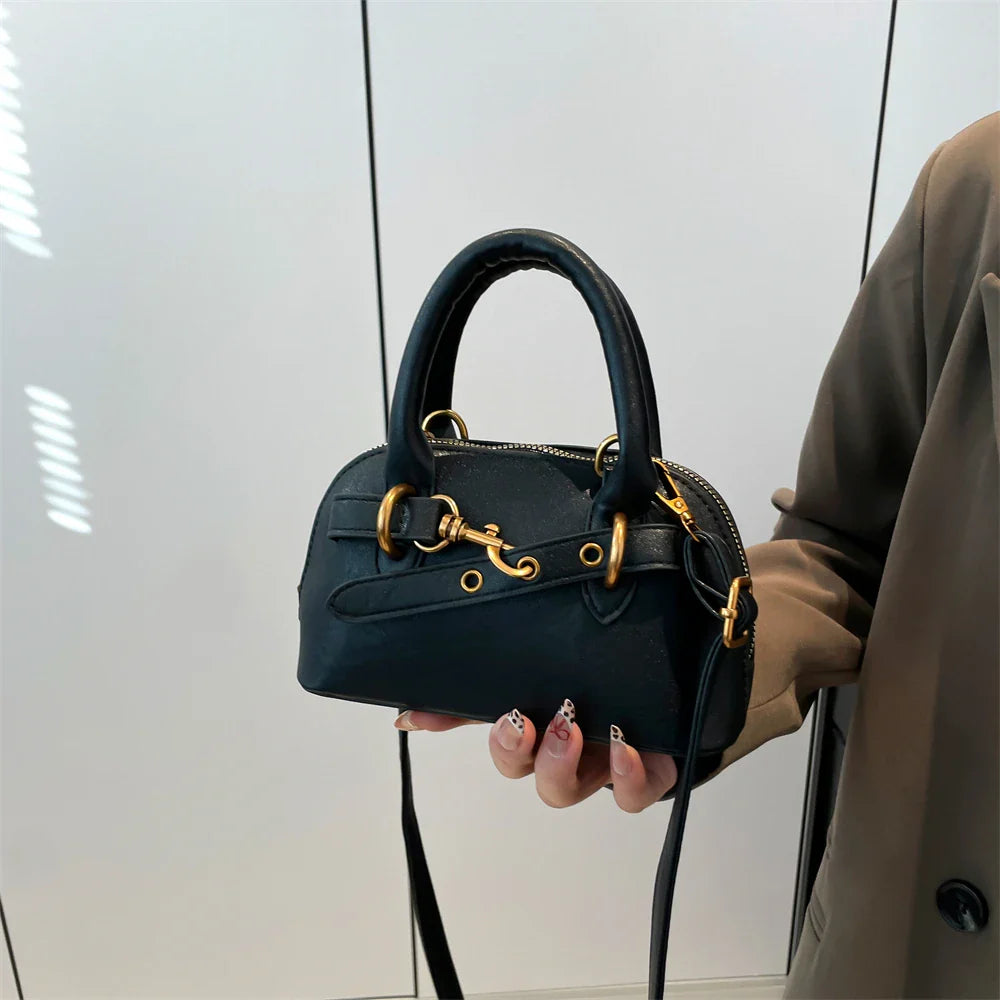 Mała skórzana torebka z ozdobnym paskiem