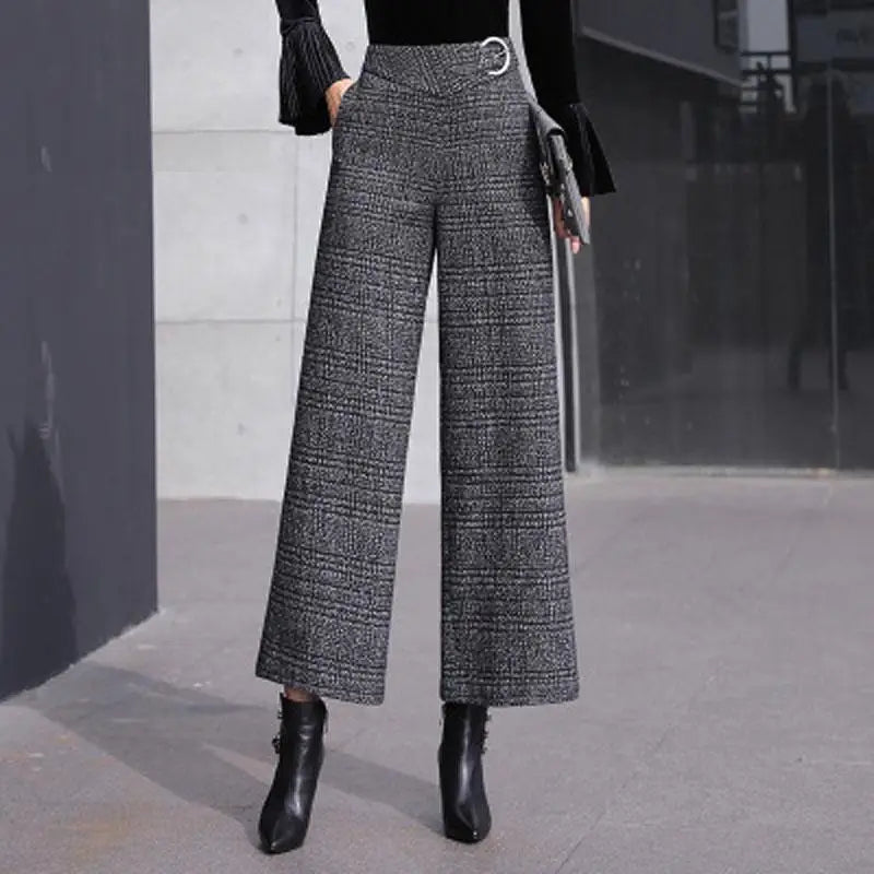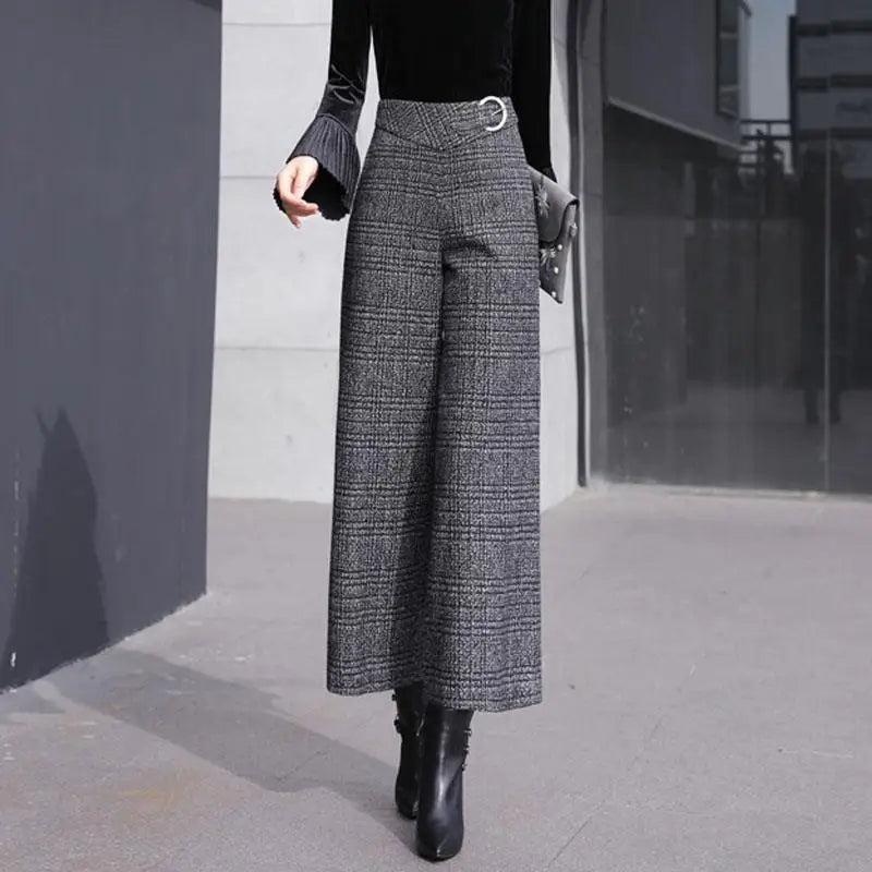 Materiałowe spodnie damskie w pepitkę