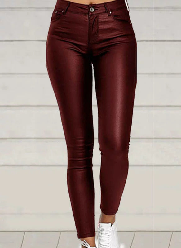 Obcisłe skórzane spodnie damskie z wysokim stanem