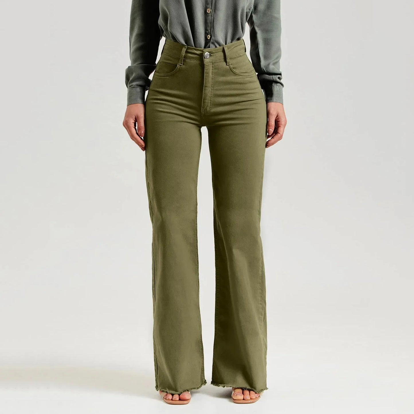 - Oliwkowe jeansy damskie