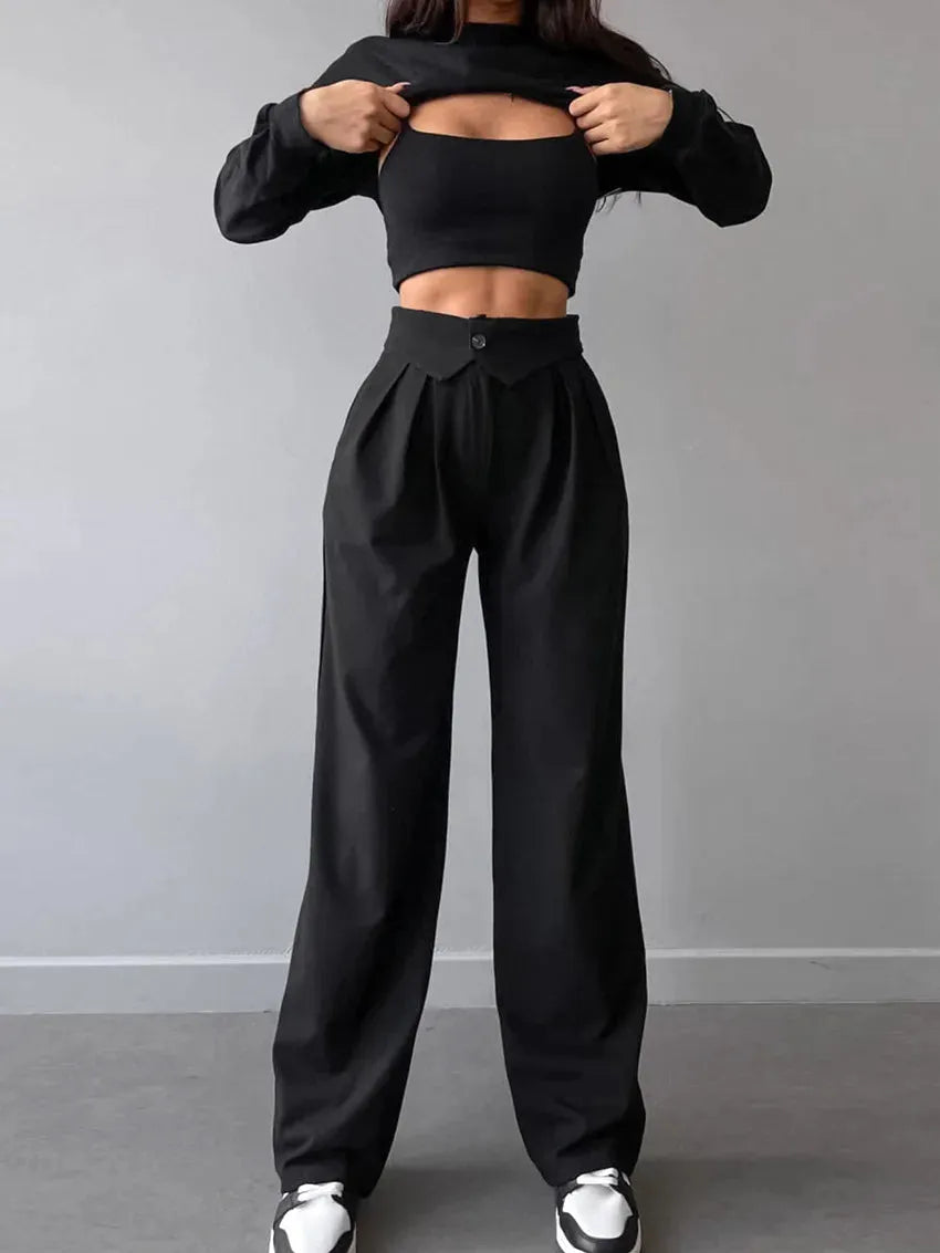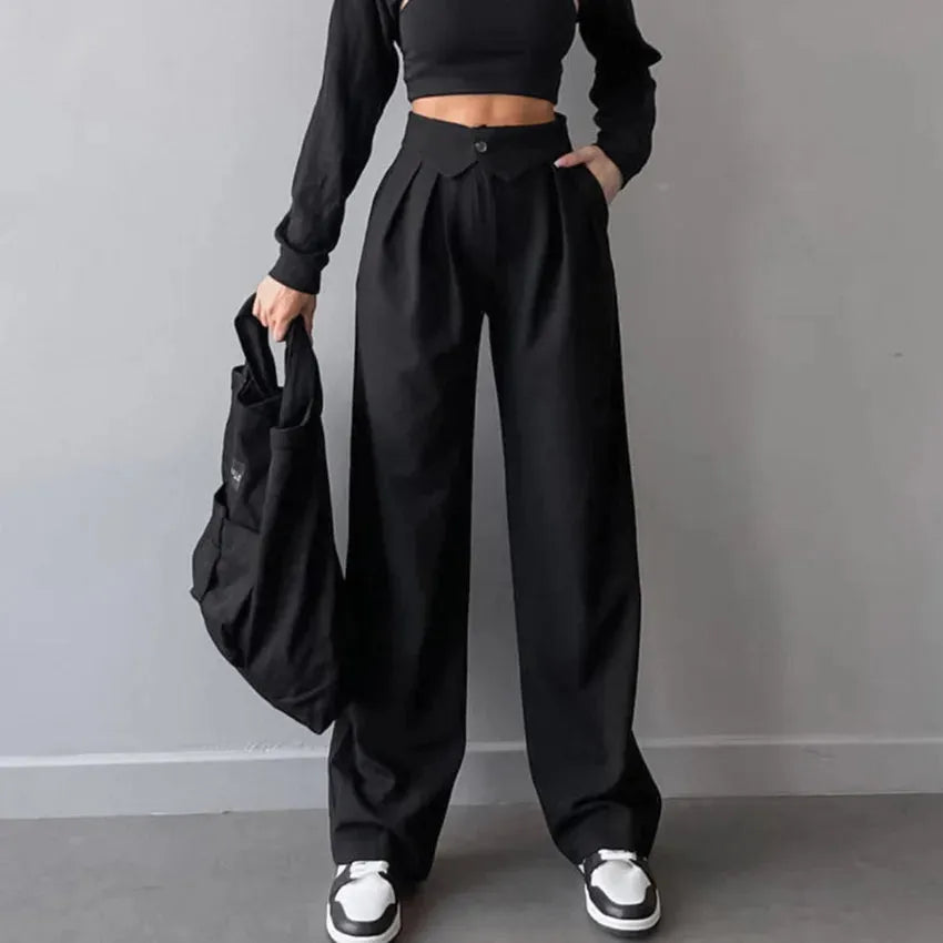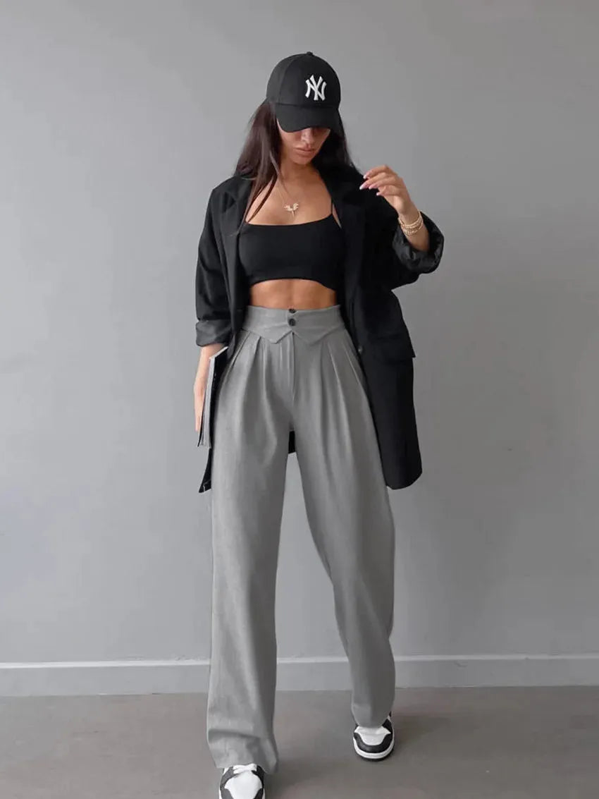 Proste damskie spodnie z dwoma guzikami