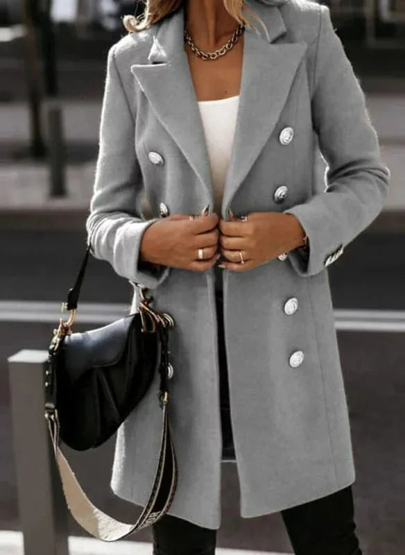 Prosty płaszcz damski z podwójnym zapięciem na guziki