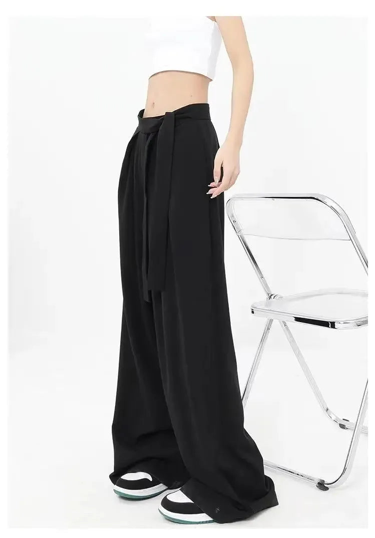 Szerokie wiązane damskie spodnie z plisami