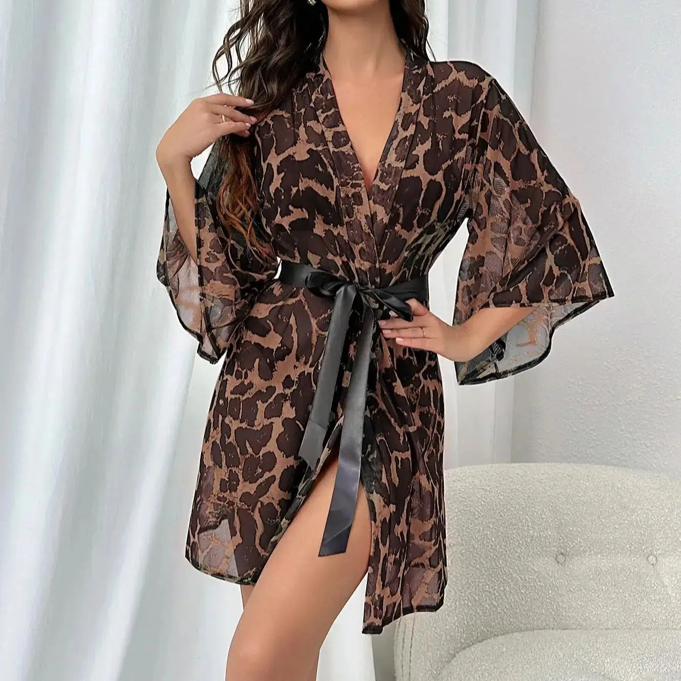 Szlafrok w panterkę z rękawkami