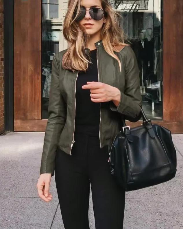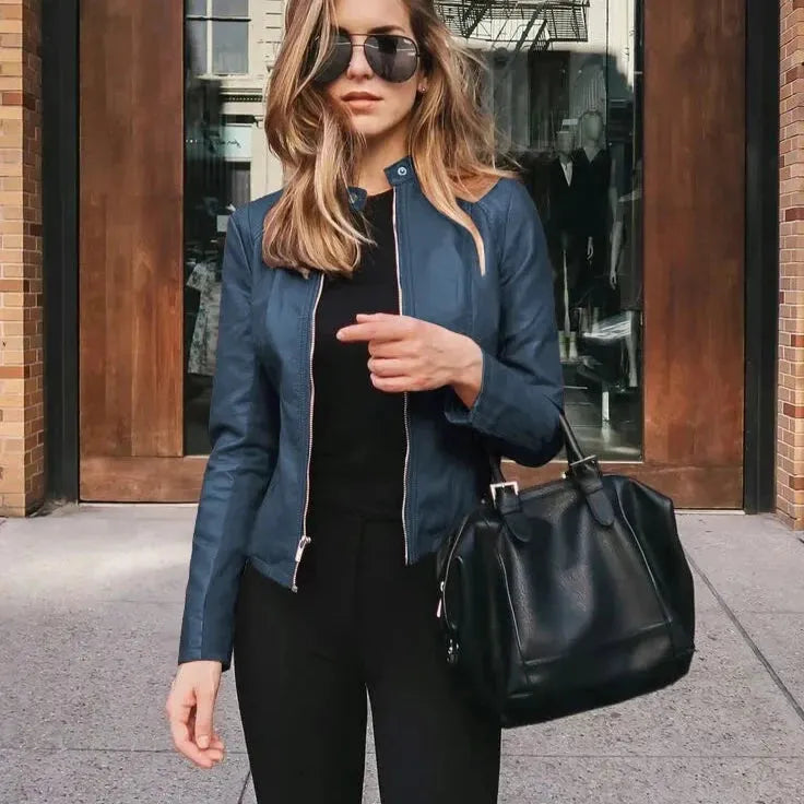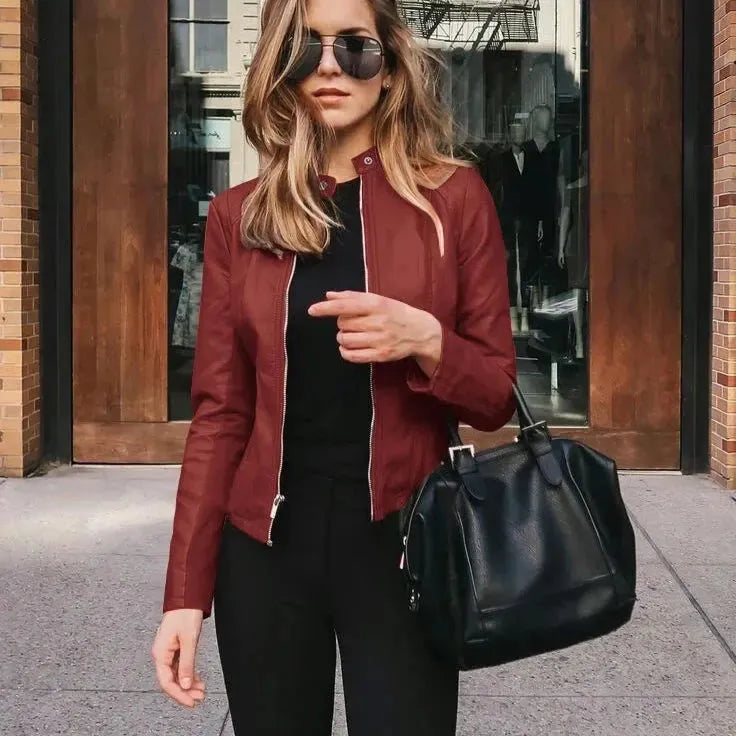 Taliowana kurtka damska ramoneska ze skóry ekologicznej