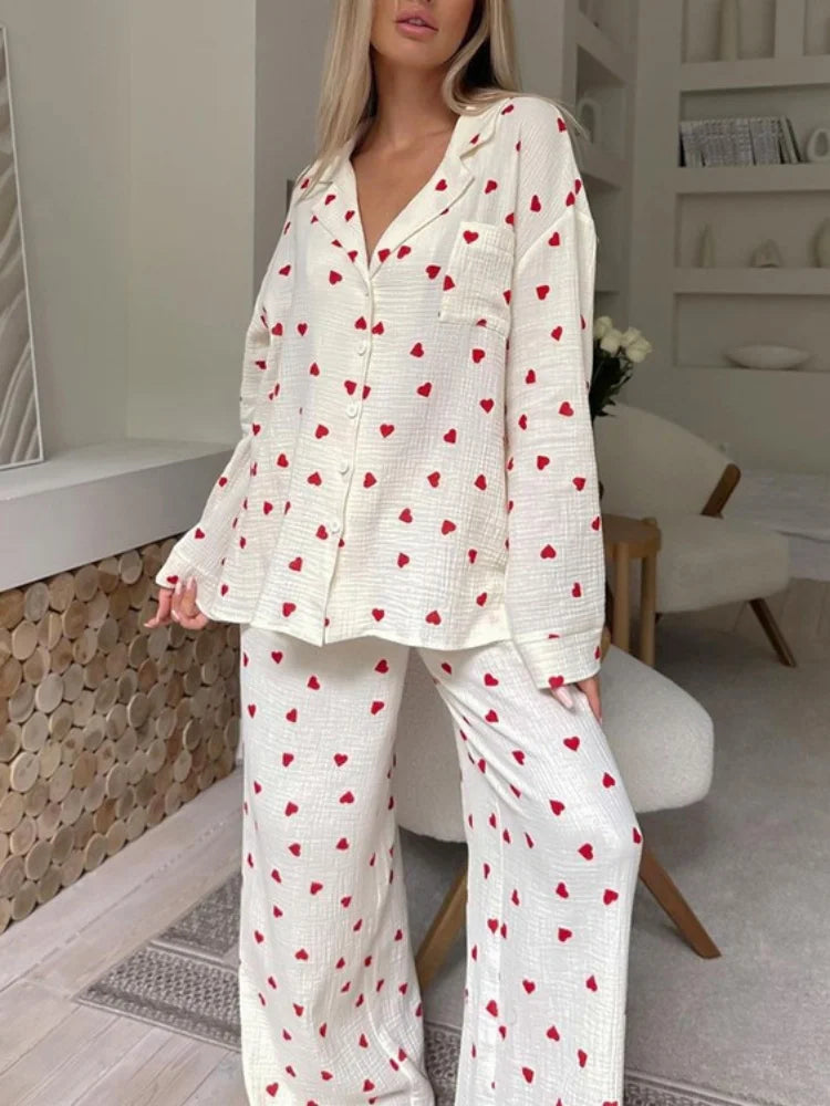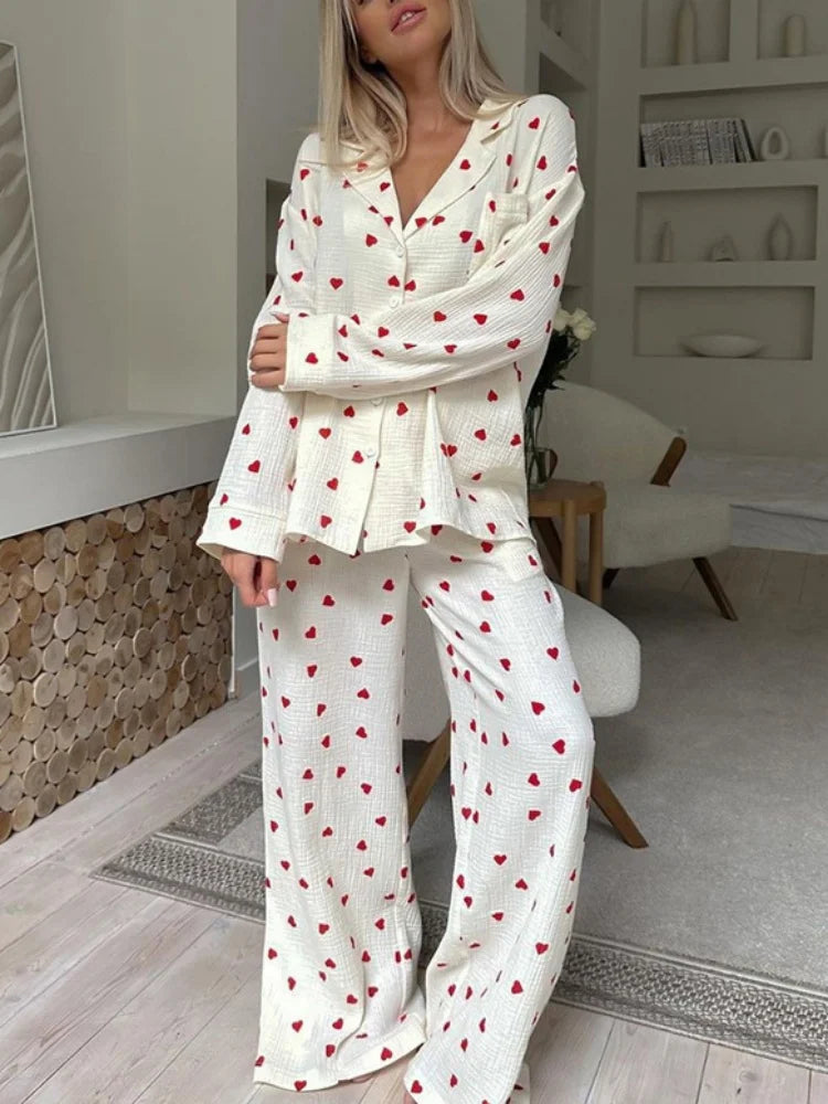 Urocza damska piżama w czerwone serca