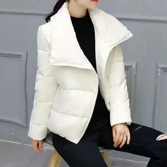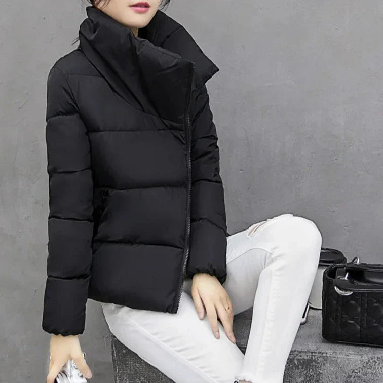 Zimowa kurtka damska z asymetrycznym kołnierzem